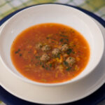 Vers bereide soep met gehaktballetjes.